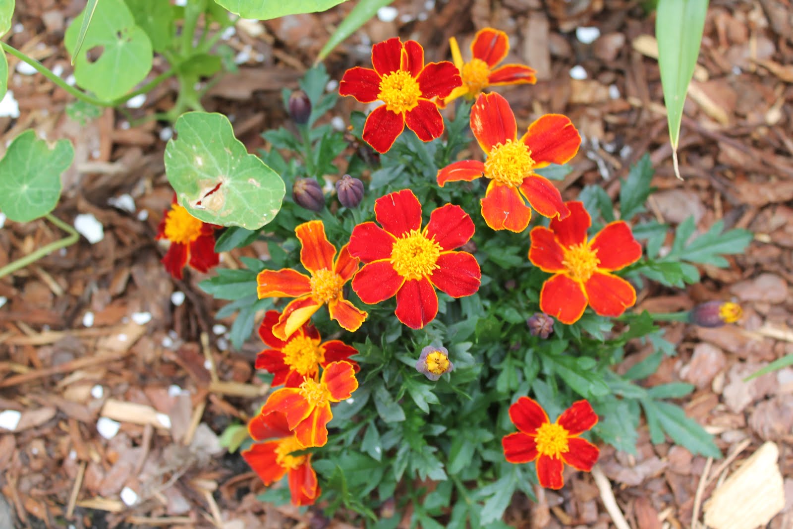 | Kerrottujen punaisten samettikukkien siemeniä keräsin edelliskesänä ja kasvatin niitä viime keväänä siemenestä. Keräsin viime kesänä siemeniä taas ensi kevään kylvöjä varten. Saas nähdä pitääkö punainen väri pintansa jälkeläisissä, kun siemenlisätyistä ei koskaan tiedä. Tämä ansaitsee ehdottomasti paikan pihaltani myös tulevana kesänä. |